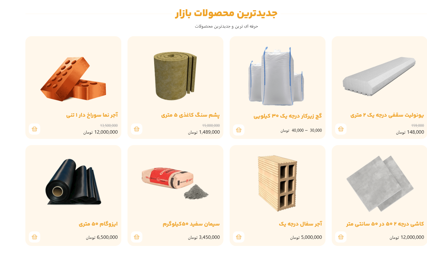 از سیمان، گچ و آجر گرفته تا تیرآهن، میلگرد، ورق، یونولیت و سفال — همه به‌صورت روزانه و بر اساس آخرین تغییرات بازار آپدیت می‌شوند.
